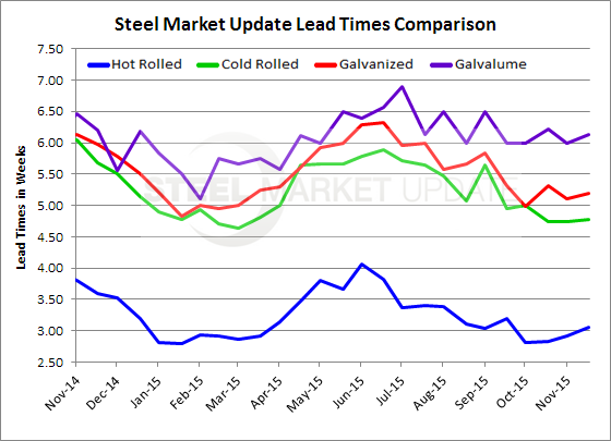 Galvalume lead times were reported to be averaging just over 6.0 weeks (6.13) which is in line with the 6.20 weeks reported one year ago.