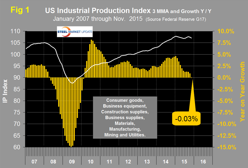 Both of these data points are reported in the Federal Reserve G17 data base. The index had an all-time high of 107.9108 in November last year but on a month over month (m/m) basis has declined for nine of the first eleven months of 2015. This contrasts sharply with last year when in only one month did the m/m index decline.
