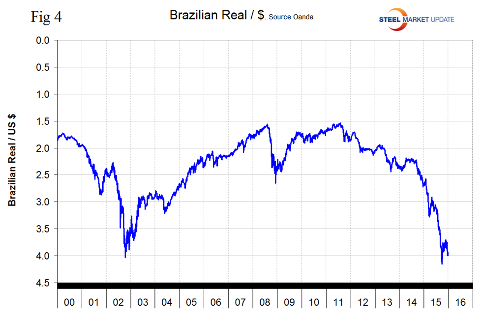 On December 25th the Brazilian Real was worth $ 0.253, it has lost 31.8 percent of its value in the last year and 5.6 percent in the last month (Figure 4).