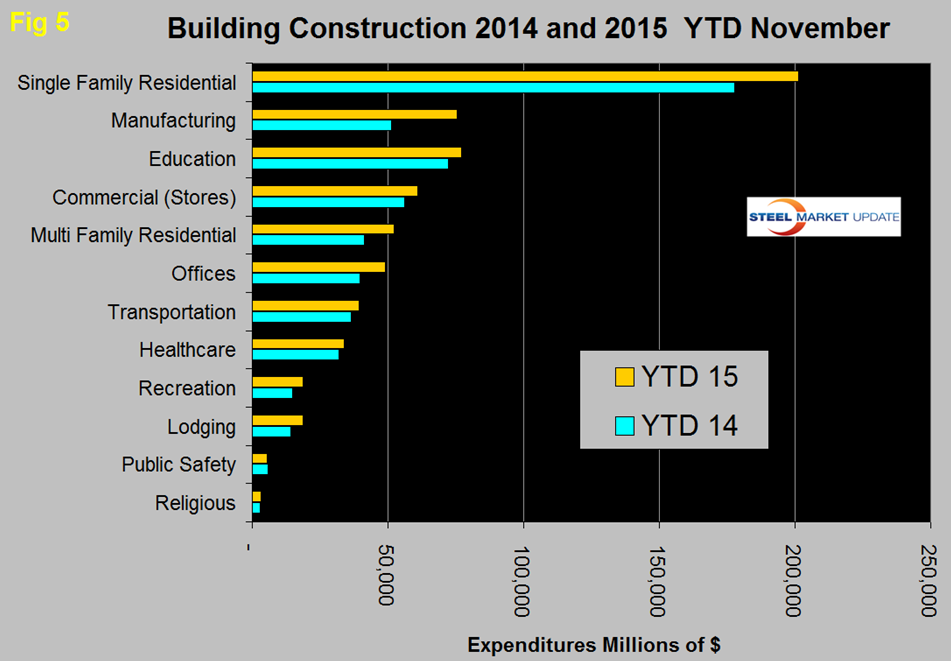 Figure 5 compares YTD expenditures for building construction for 2014 and 2015.