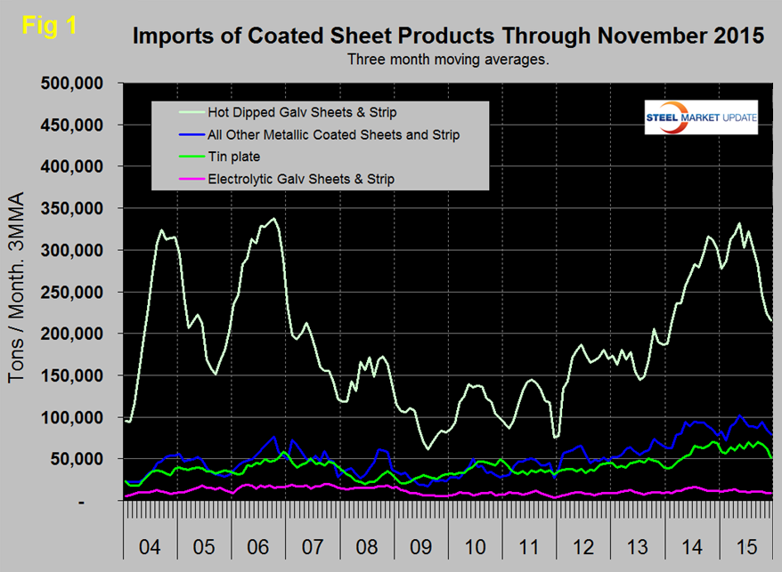Figure 1 shows the long term picture of coated product imports since January 2011.