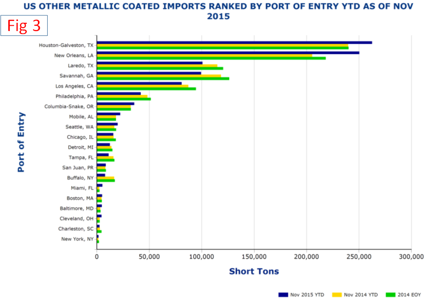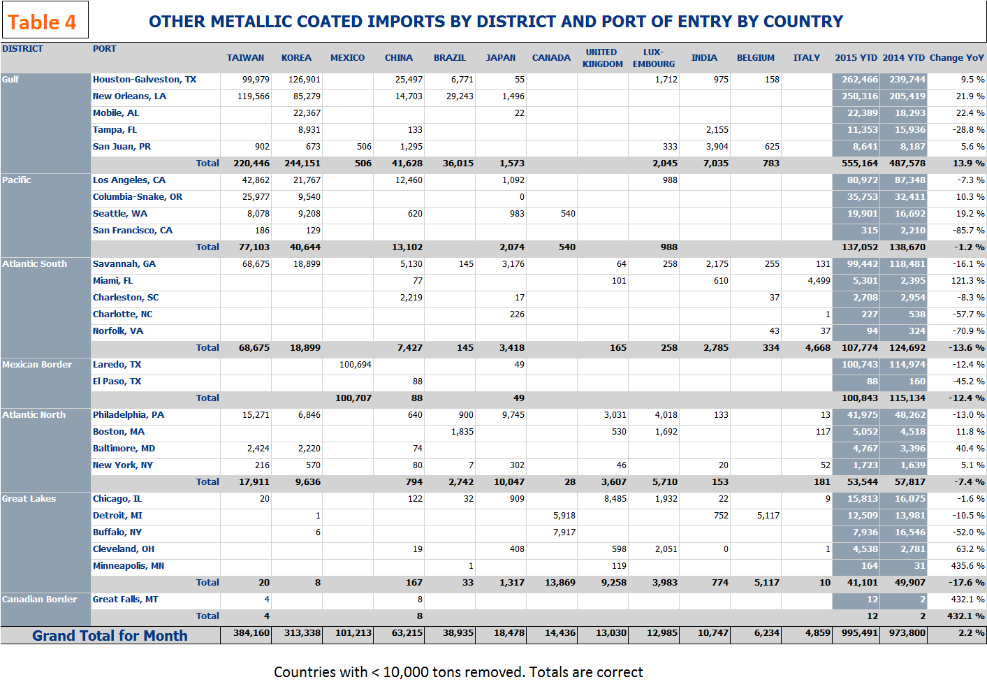 Table 4 puts it all together by showing the total tons that came into a port or region broken down into the source country for the first eleven months of 2015.