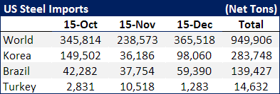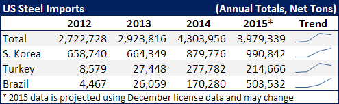 The Numbers: Hot Rolled Imports from Brazil, Turkey & Korea