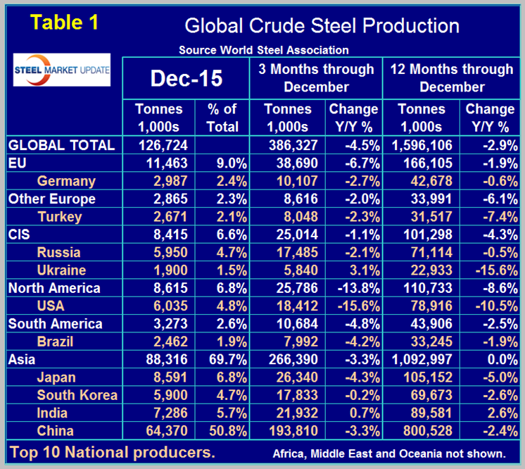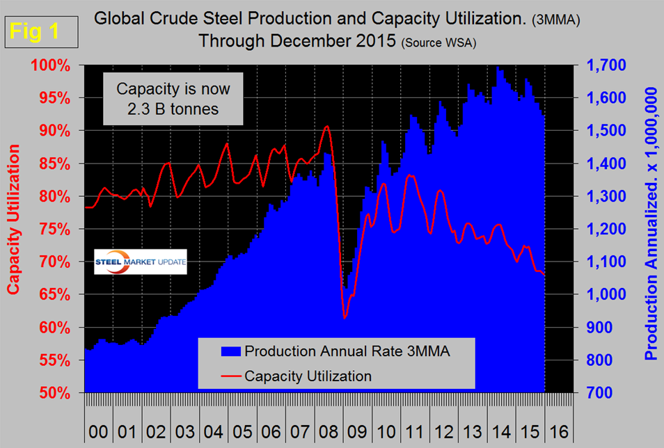 Global Steel Production and Capacity Utilization in December 2015