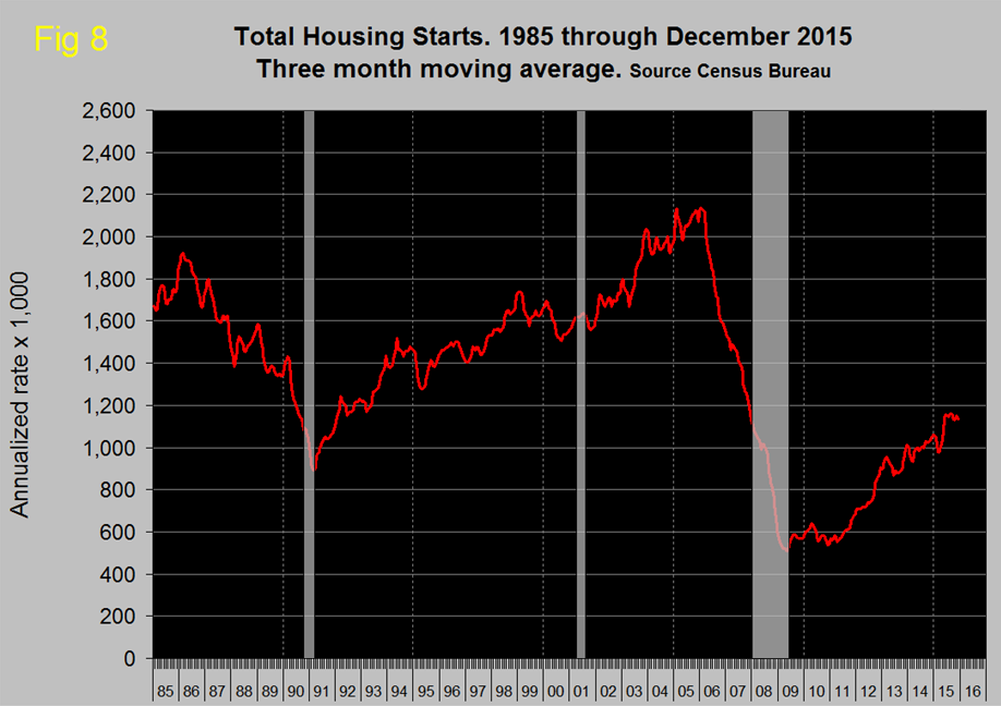 The other is the production rate of heavy trucks which we will describe in our next article on automotive production. Figure 8 shows how housing starts were a leading indicator with several years warning of all three recessions since 1985. Housing is driven by the consumer who accounts for about 68 percent of GDP therefore at this time the starts data is not flashing red as far as the general economy is concerned.