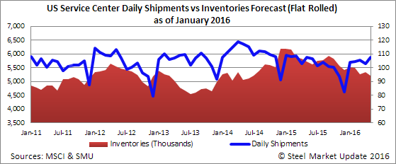 Everyone needs to remember that January tons were ordered on most products back in November at a time when skepticism was high and inventories were being reported as being too high. Service centers were not yet in a building mode. Once we got into December and lead times extended into February and March the service centers realized that they needed to place tons and began to do so. We are forecasting receipts to be 5 percent below the three year average in February & March 2016. We then believe we will turn back toward the norm being down 3 percent in April and then at the three year average in May and June 2016.