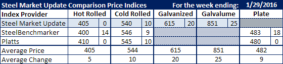 Plate prices rose on the SteelBenchmarker index (SteelBenchmarker reports twice per month) while they remain the same on Platts.