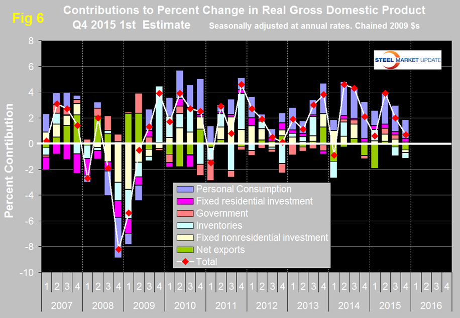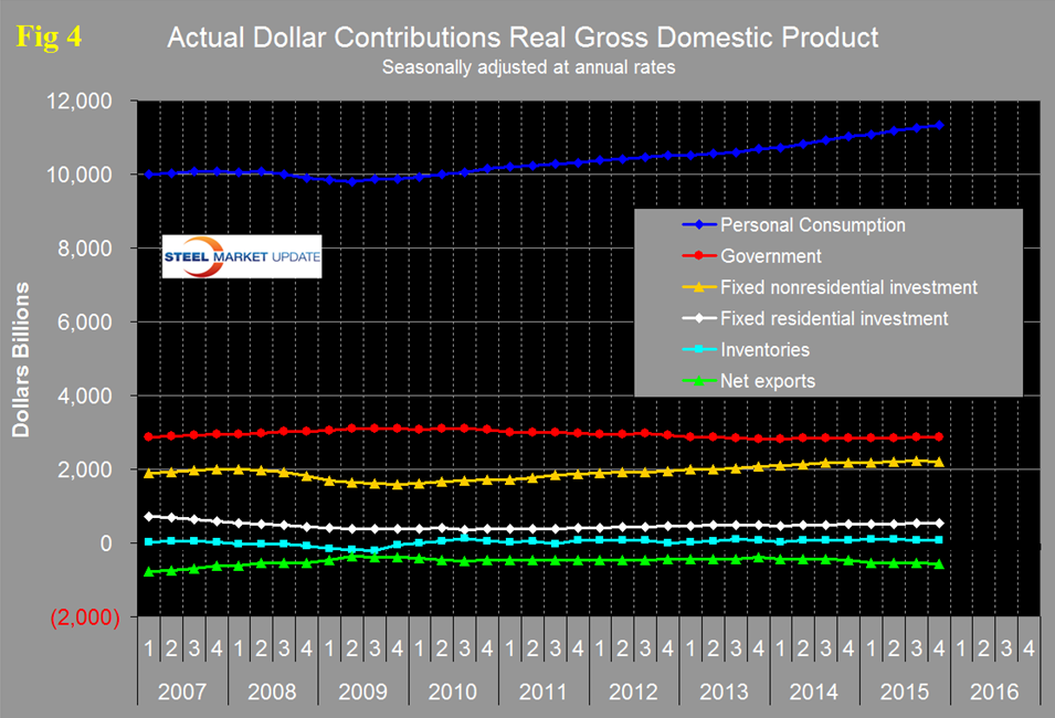 SMU Comment: We have observed frequently in our SMU reports that steel demand has not been where it should be based on several previously indicative benchmark indicators and that a decline in inventories throughout the supply chain was likely a major contributing factor. This GDP data would seem to be supportive of that view as an inventory reduction has detracted from GDP for the last half of 2015.