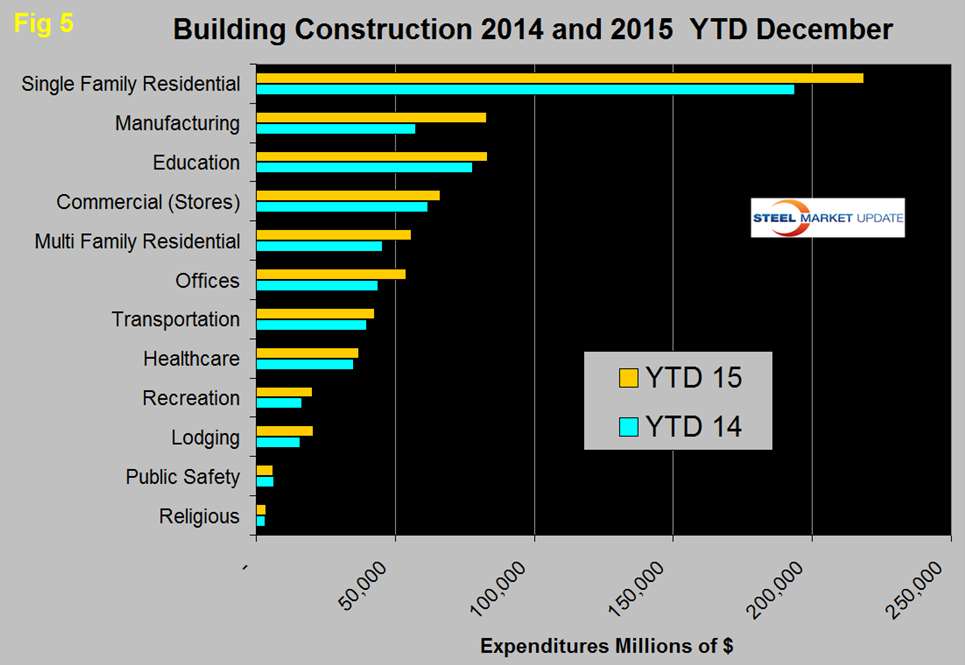 Figure 5 compares YTD expenditures for building construction for 2014 and 2015.