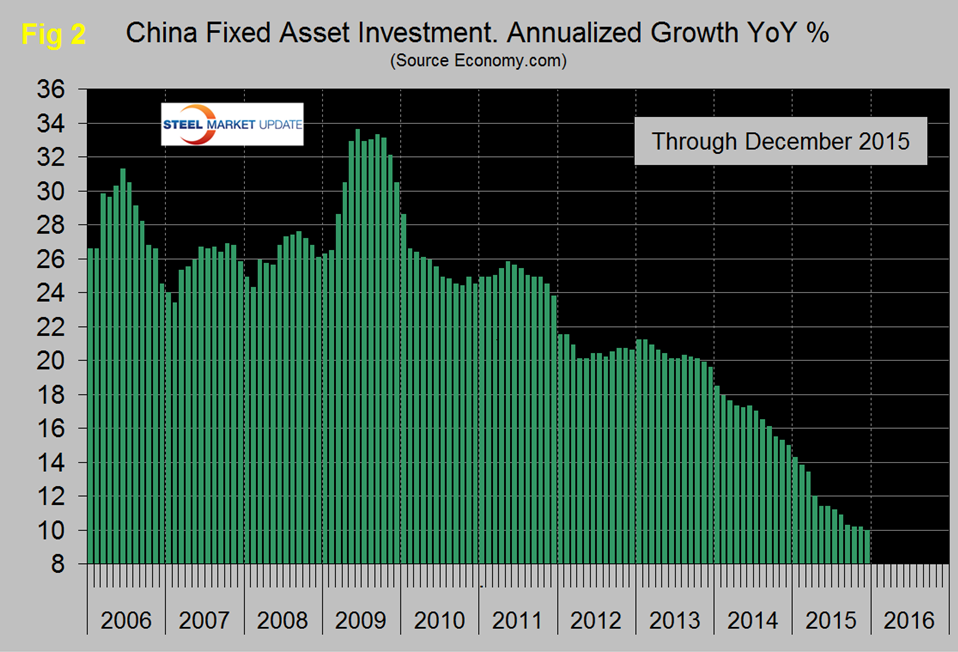 SMU Comment: It strikes us at SMU that all the talk about China re-balancing their economy in favor of consumption is very misleading by suggesting that this change is imminent. More likely this will take a generation to accomplish and in the meantime the world is saddled with massive overcapacity in steel production. We estimate that global steel overcapacity is now about 460 million tonnes per year and of that a high proportion is in China. In the 12 months of 2015, China produced 800.5 million tonnes, down by 2.4 percent from 819.9 million in 2014. China is now pushing more than the total of US steel production onto the world market.