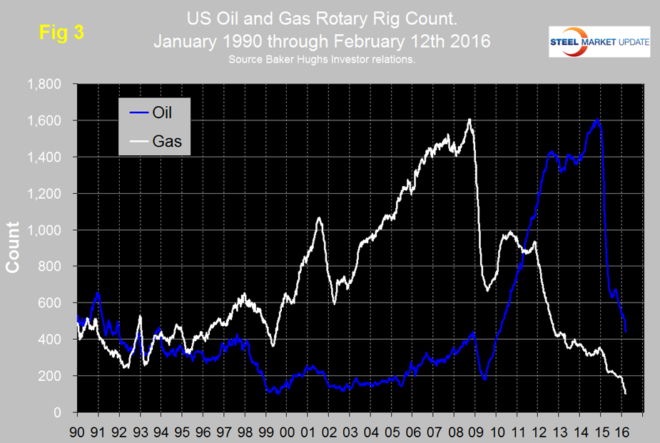 Figure 2 shows the apparent supply of the two main steel tubular products used in oil and gas production from February 2003 through December 2015 (Apparent supply is a proxy for demand).