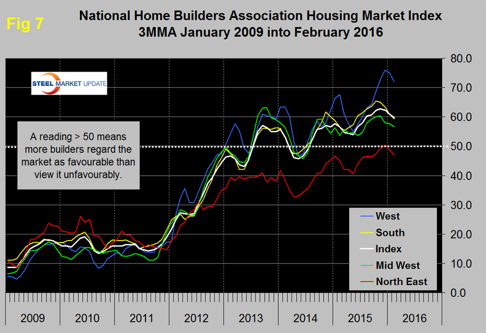 These are still good results for all except the North East but all regions are showing a downtrend. The official news release from NAHB reads as follows: