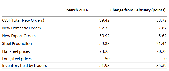 BEIJING, March 8, 2016 – Optimism has returned to the Chinese steel market on the back of buoyant domestic demand for steel and stronger prices, resulting in the Platts China Steel Sentiment Index (CSSI) hitting a record high of 89.42 out of a possible 100 points in March, according to the latest survey conducted by Platts.