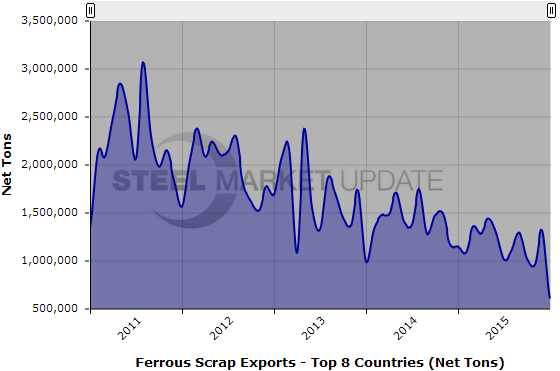 The table below lists the top eight importing countries along with the total amount of exported ferrous scrap.