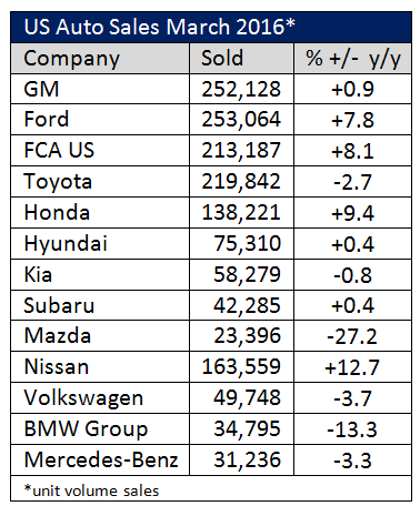 March U.S. automotive sales exceeded expectations on a year over year basis with total raw volume sales growing 3 percent due to higher volume of premium brands.