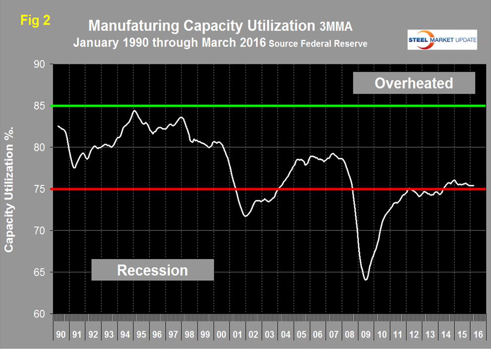 Regarding the March result the Fed had this to say; “Capacity utilization for the industrial sector decreased 0.5 percentage point in March to 74.8 percent, a rate that is 5.2 percentage points below its long-run (1972–2015) average.”