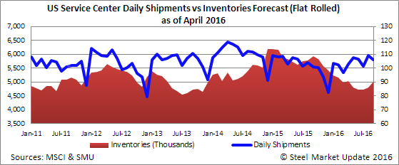 If our forecast is correct shipments will be slightly below March 2016 levels and inventories will grow to 5,040,000 tons.