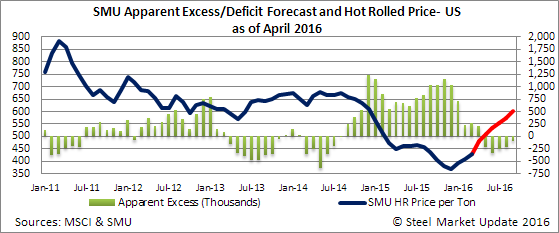 As the months progress we have shipments remaining either the same or beginning to gain traction against the weak numbers posted during the same months in 2015. The higher shipment rates will keep inventories below 5 million tons and will eliminate the Apparent Excess by May at which point inventories will be in an Apparent Deficit where they will remain until September.