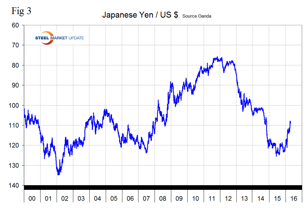 Figure 3 shows the value of the Yen since January 2000.