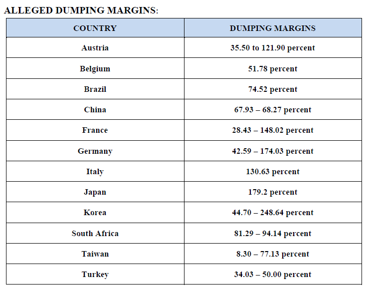 On April 29, 2016, the Department of Commerce initiated an antidumping duty (AD) investigation of imports of certain carbon and alloy steel cut-to-length plate (CTL plate) from Austria, Belgium, Brazil, China, France, Germany, Italy, Japan, Korea, South Africa, Taiwan, and Turkey, and countervailing duty (CVD) investigations of imports of CTL plate from Brazil, China, and Korea.