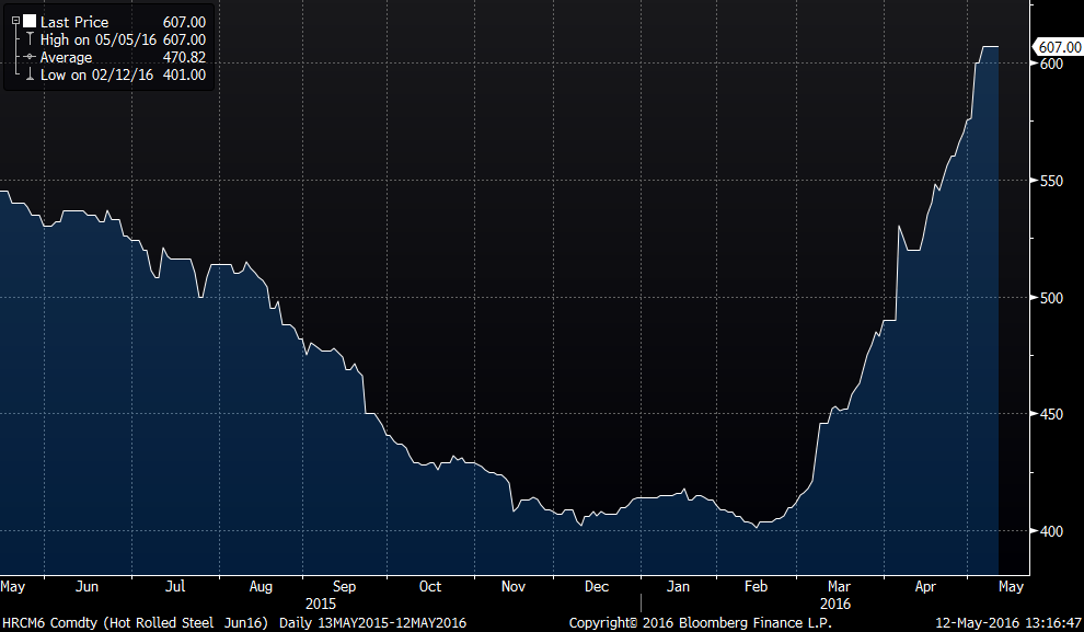 On the other hand, US Midwest HRC futures continue to rip higher.