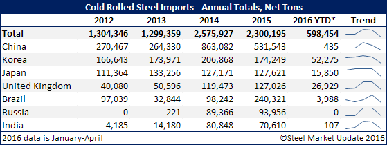 History of Cold Rolled Imports from Countries Associated with Cold Rolled Trade Suits: