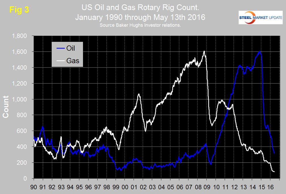 Figure 2 shows the apparent supply of the two main steel tubular products used in oil and gas production from January 2003 through March 2016 (apparent supply is a proxy for demand).