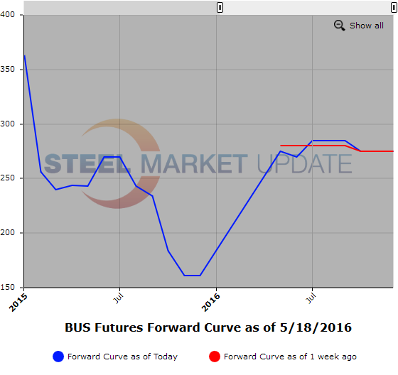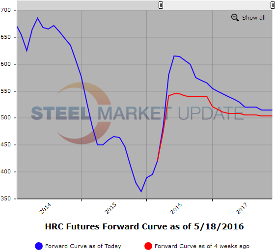 CME HR spot month futures rose to $581/ST on preliminary index average but HR market focus continues in Q3’16 and Q4’16 which it should be noted is heavily backwardated based on yesterday’s settlements of Q3’16 @ $607/ST and Q4’16 @ $570/ST.