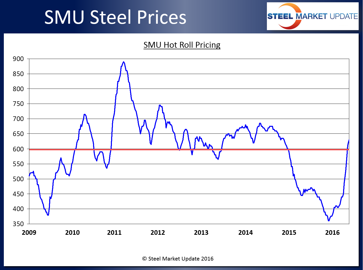 Whenever SMU speaks to steel buyers about flat rolled steel pricing cycles we inevitably hear about how the domestic steel mills have a tendency to over-correct to both the low and the high sides of the cycle (boom/bust). In the process there seems to be an assurance that market volatility will continue to be significant as the markets try to return to the mean. Every cycle has its driving force: too much (or too little) supply, extended (or short) lead times, too much (or not enough) service center inventories, too much (or too little) foreign steel imports, etc.