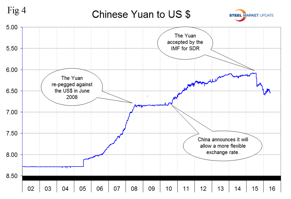 Figure 4 shows the history of the Yuan against the US $ since January 2002.