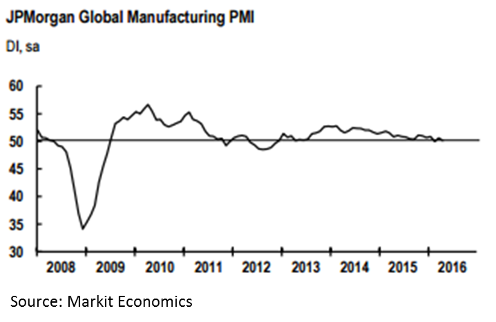 Global manufacturing appeared stagnant in May, according to the JP Morgan Global Manufacturing PMI. The composite index was at the no change mark of 50.0, nearly the same as April’s reading of 50.1.