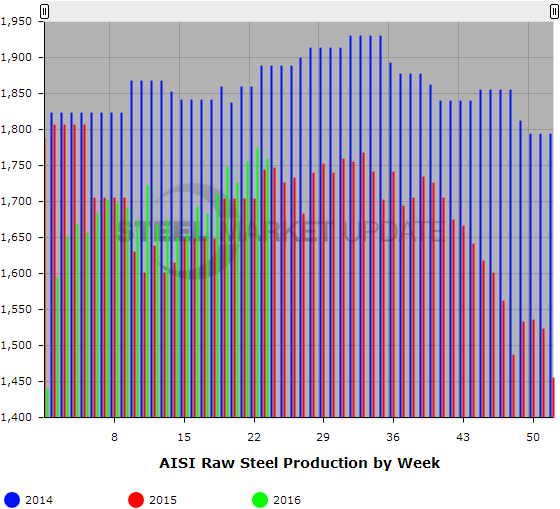 Note that the AISI estimates capability for Q2 2016 to be 30.4 million tons versus 30.7 million tons for the same period last year and 30.4 million tons for the Q1 2016.