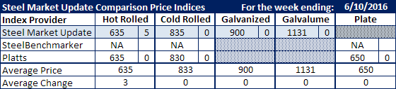 Last week Steel Market Update advised our readers that we were considering removing the Comparison Price Indices article from our newsletter. The index has more value, in our opinion, when there is a wider array of data points available to be compared. We publish only the indices where we have permission to do so. Over the years the number of indices has dropped to the current two plus our own SMU index.
