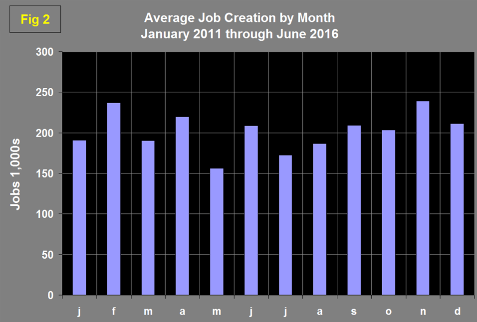 Last month we wrote regarding the May result, “The BLS reported that 38,000 jobs were added in May, a result so poor and unexpected as to be barely credible. Mitigating circumstances were the Verizon strike that removed about 34,000 from the employed pool and secondly that in the last six years May has been down by 28 percent from April. Even with those caveats, the June result was dismal and doesn’t jive with the other economic data that we study”.