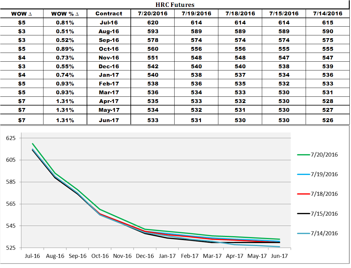 Hot Rolled Futures Move $3 to $7 Higher in Past Week
