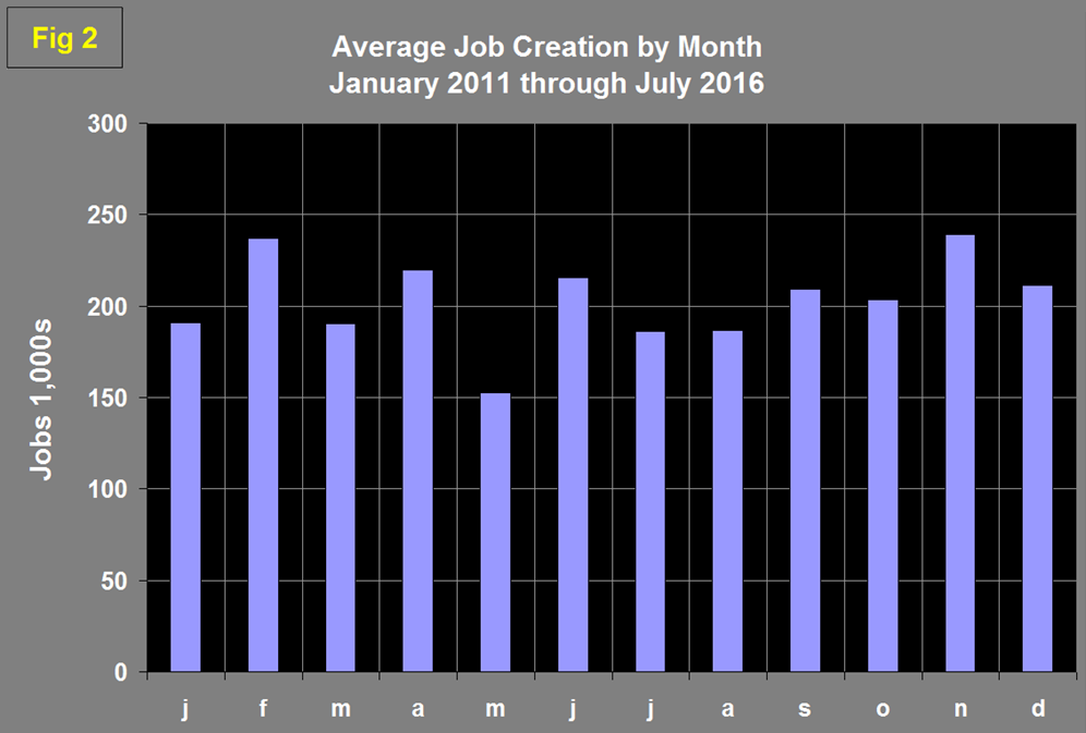 The January dip is a weather effect and July is depressed by automotive plant re-tooling but we have no explanation for the historic May decline. Evidently the seasonal adjustment is less than perfect. Historically July declines by 14 percent from June, this year the decline was 13 percent. Total nonfarm payrolls are now 6,083,000 more than they were at the pre-recession high of January 2008.