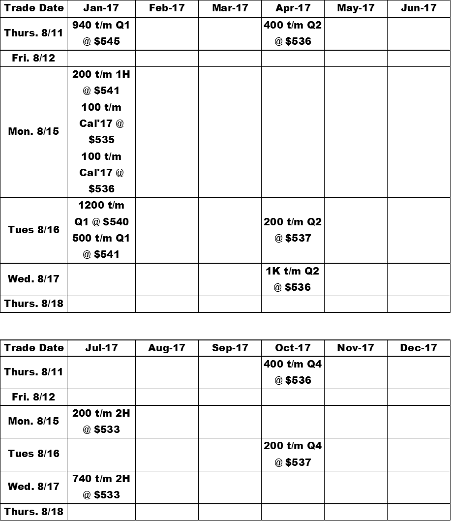 With Big River expected to start producing by year end and the surprising announcement that the hot strip at the former Wheeling Pitt mill will be opening to roll imported slabs as soon as November, the bull case is somewhat tarnished. However, strong auto sales, continued momentum in construction and a decent ISM PMI combined with the solid supply side fundamentals addressed above could provide some push back. At these low inventory levels, a supply disruption could turn the market around in a heartbeat. Post Labor Day developments will be interesting, especially if domestic mills attempt a price increase to bolster current prices.
