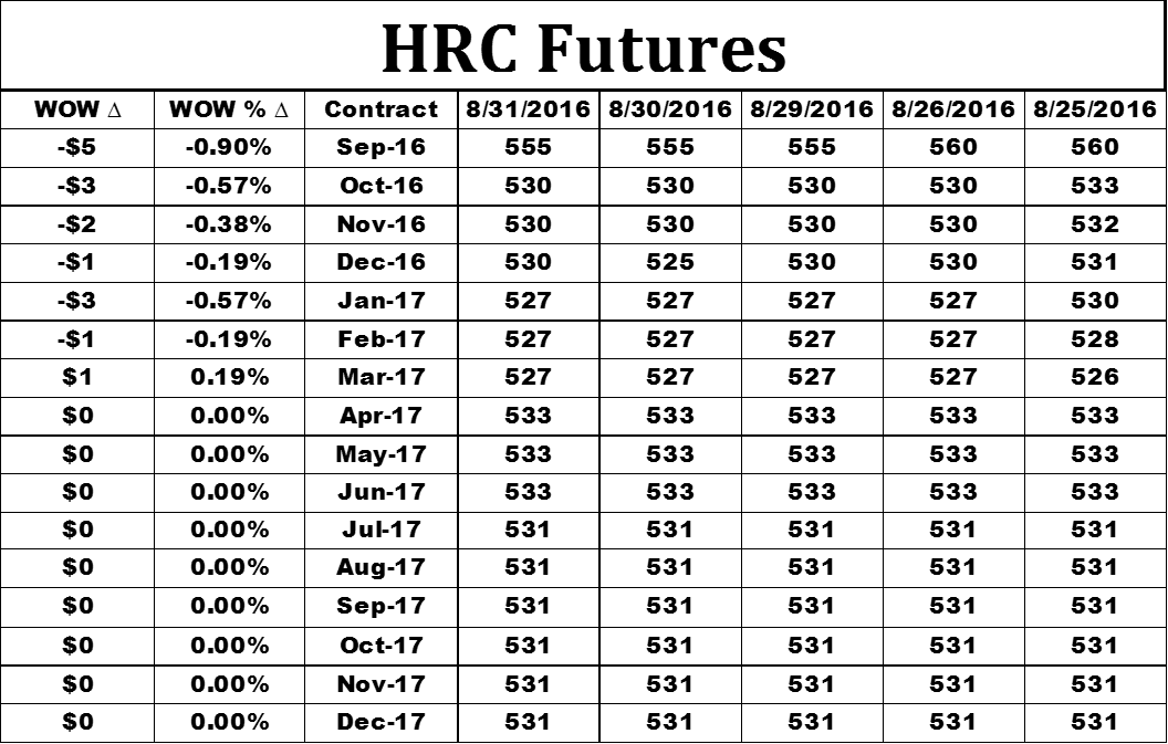 The bottom line is the weeks following Labor Day will tell us a ton about what we can expect for the rest of 2016 and as this information is fleshed out, it may lead to some palatable volatility in the futures. I can tell you for sure HRC prices will either go up, stay flat or head lower.