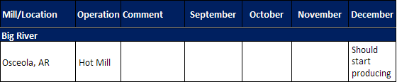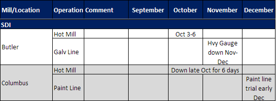 Nucor has something scheduled at all of their flat rolled steel mills during the late 3rd and 4th Quarters. We understand that the Nucor Arkansas units are on a staggered basis to minimize the impact that maintenance could have on their customers.