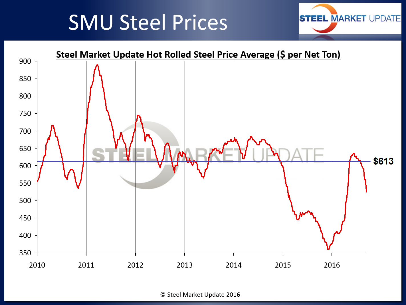 By the way, for those interested, the average hot rolled coil spot price from January 1, 2010 to January 1, 2016 was $613 per ton.