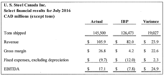 USSC is expecting positive results for August but forecasts declining sales volume and pricing for the balance of the year. USSC is concerned about the possible redirection of steel imports into Canada as a result of U.S. antidumping cases and about the general uncertainty of price direction for the coming months.