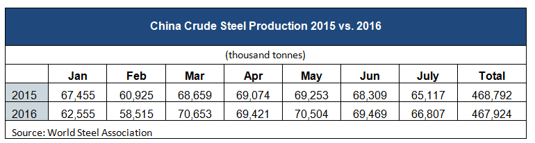 The mergers will create a monopoly in the China steel market which theoretically should allow the steel giants to control production. Whether the targeted capacity reductions can be achieved is still a matter of debate by analysts. According to World Steel Association, China crude steel production through July 2016 was 466.5 million tonnes, compared to 468.7 million tonnes in the same period in 2015. However, monthly production since March 2016 has been higher than corresponding months in 2015.