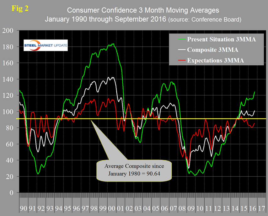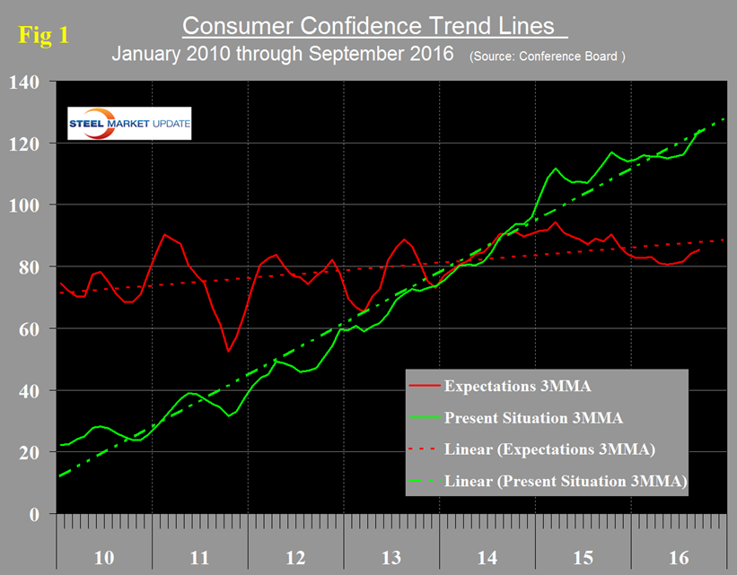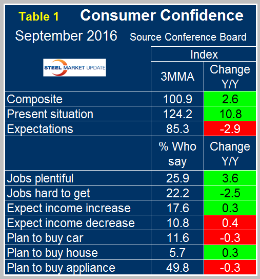 SMU Comment: Consumer confidence is positively correlated with personal consumption which accounts for about 2/3 of GDP. Ultimately the growth of GDP positively drives steel consumption therefore the overall September improvement is welcome.