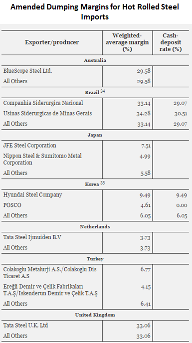 The Department of Commerce announced adjustment to the antidumping duties assigned to Australia, Korea and Turkey in the hot rolled steel investigation.