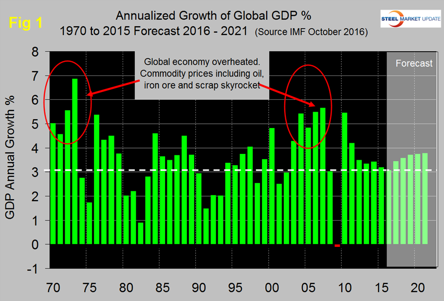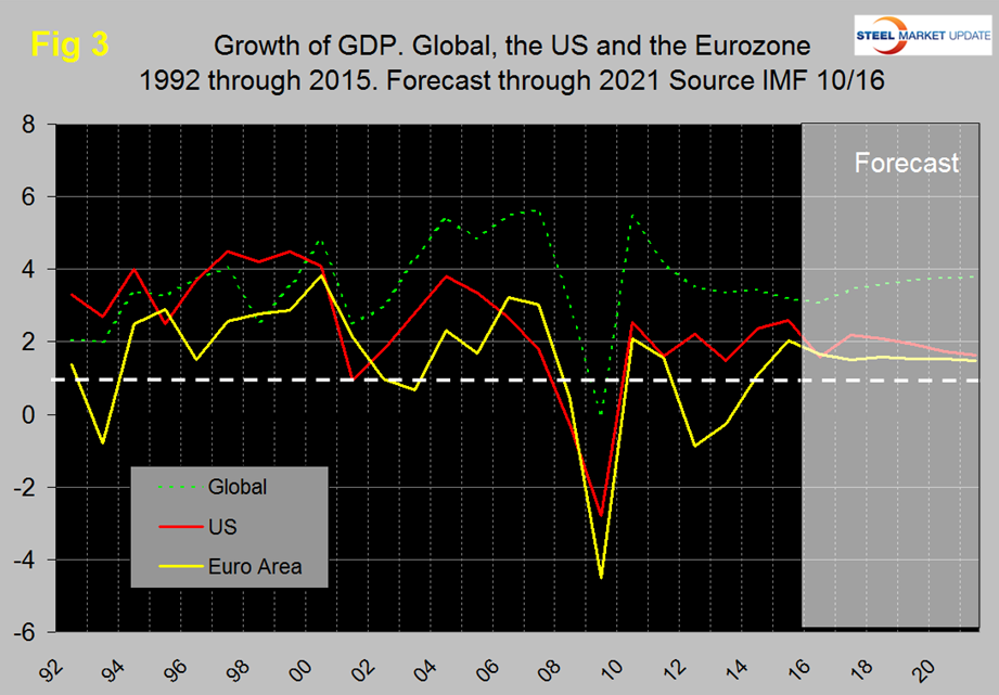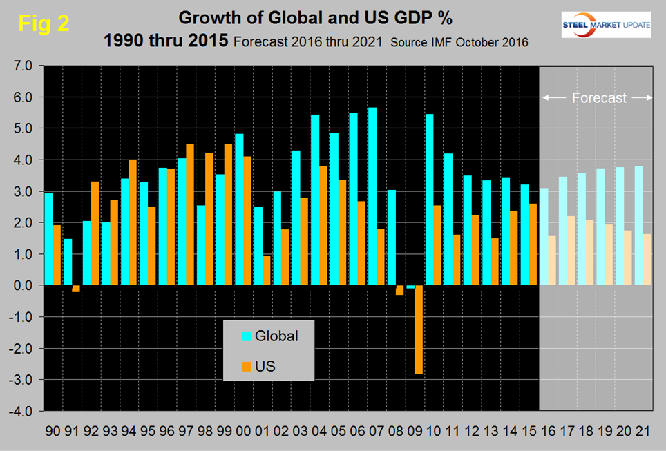 We include here an unabridged statement from the IMF that was released on Tuesday this week which forecasts economic growth for all regions and nations through 2021. The IMF reduced its forecast for economic growth in the US in 2016 from 2.4 percent in the April forecast to 1.68 percent and in 2017 from 2.5 percent to 2.2 percent. Our SMU data analysis follows with comments about the future of global and domestic steel demand through 2021. We believe that an understanding of global influences is essential if we are to have any idea what the future of the US steel market will look like.