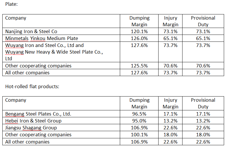The Commission will decide within six months whether to reconfirm and extend the tariffs for the next few years. At that time, the Commission will also decide whether to retroactively collect the duties on heavy steel plates imported from China between August and October 2016.