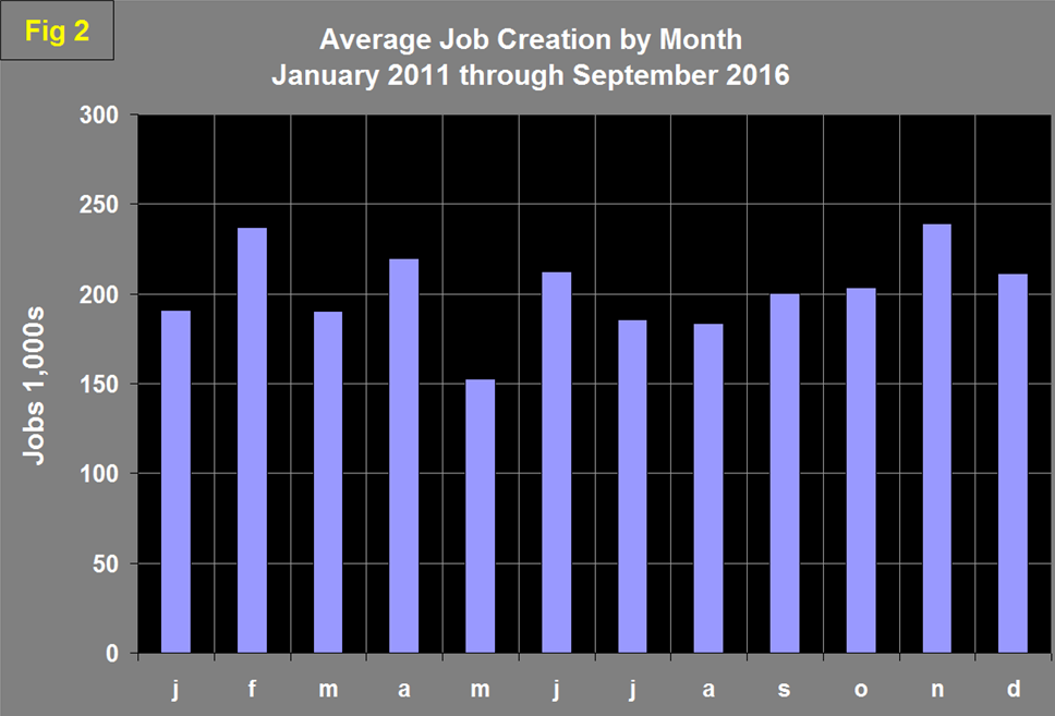 Evidently the seasonal adjustment is less than perfect. In the six years since and including 2011, September job creation has been up by 9.3 percent. This year September was down by 6.6 percent therefore this is a disappointing result. Total nonfarm payrolls are now 6,382,000 more than they were at the pre-recession high of January 2008.