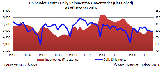 September MSCI carbon steel shipment and inventories data showed demand as being below the normal seasonality expected. September shipments were down 1.4 percent compared to August and the norm for September is for shipments to be up 1 percent MOM.