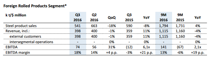 The segment saw Q3 sales decline to 541,000 tonnes, down 18 percent from Q2 and 8 percent year over year. The decrease was due to softer demand and normalization of inventory in the U.S. and seasonally slower demand in Europe. NLMK USA sales totaled 444,000 tonnes for the quarter.
