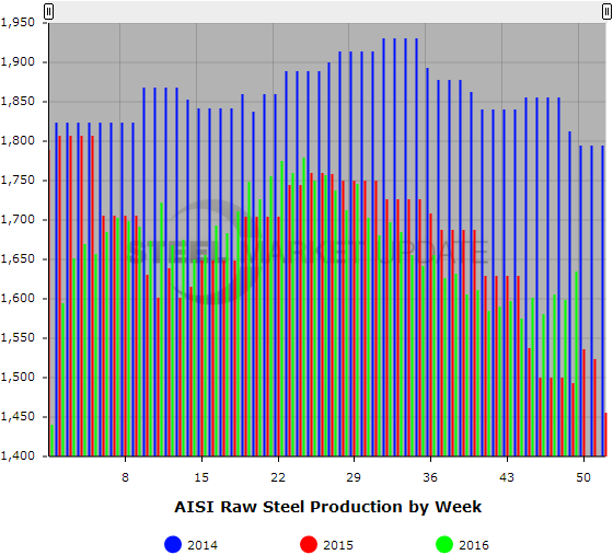SMU Note: Below is a graphic showing the weekly raw steel production history. To use the graphs interactive capabilities, you must view it on our website. You can do this by clicking here. If you need help navigating the website or need to know your login information, contact us at info@SteelMarketUpdate.com or by calling 800-432-3475.